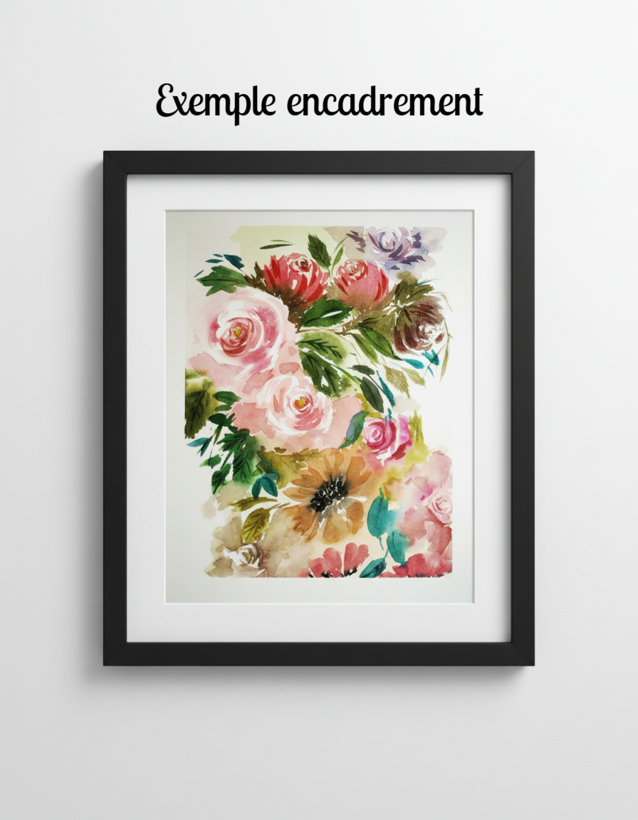 Chaque aquarelle est soigneusement emballée et expédiée en colissimo avec signature, assurée pour l'envoi. Les frais d'envoi comprennent les frais de port (7,50 €) + les frais de signature avec assurance envoi (3,30 € ).